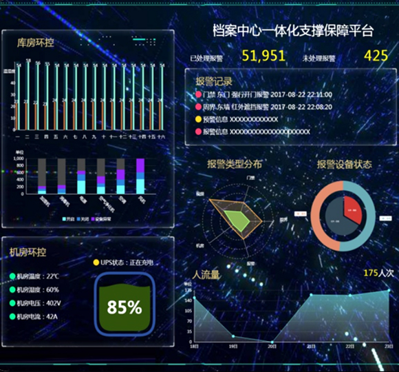 檔案庫房集安全管理系統(tǒng)、環(huán)境智能系統(tǒng)、消防檢測系統(tǒng)于一體,杜絕檔案安全隱患問題