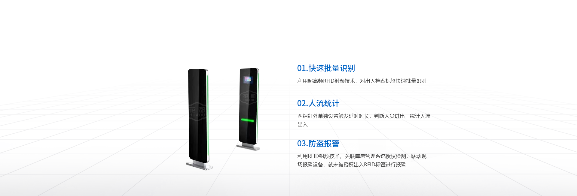 HD-TDMJ01 RFID智能通道門禁主要用于智慧檔案庫(kù)房的出入口,利用超高頻RFID射頻技術(shù),對(duì)RFID標(biāo)簽快速批量識(shí)別,實(shí)現(xiàn)對(duì)出入檔案精準(zhǔn)識(shí)別,聯(lián)動(dòng)報(bào)警的功能。采用紅外觸發(fā)讀取模式,實(shí)現(xiàn)人流統(tǒng)計(jì)功能。